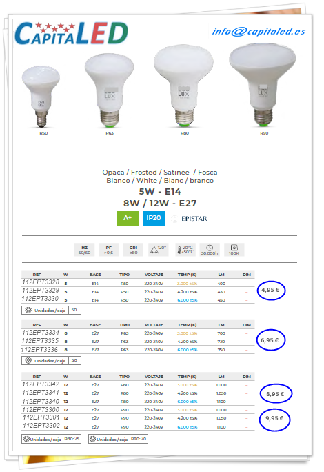 Tubos, Paneles Led, Linestras, Regletas y Pantallas Estancas